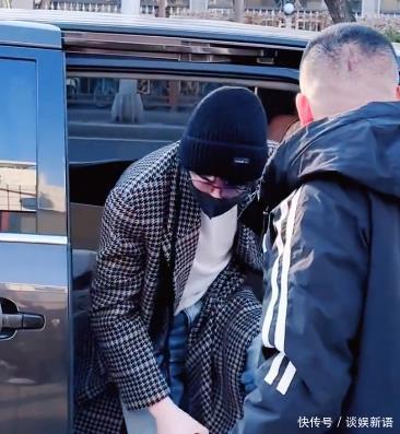 结束完春晚彩排后,沙溢就穿上棉袄戴起棒球帽走向了车上。